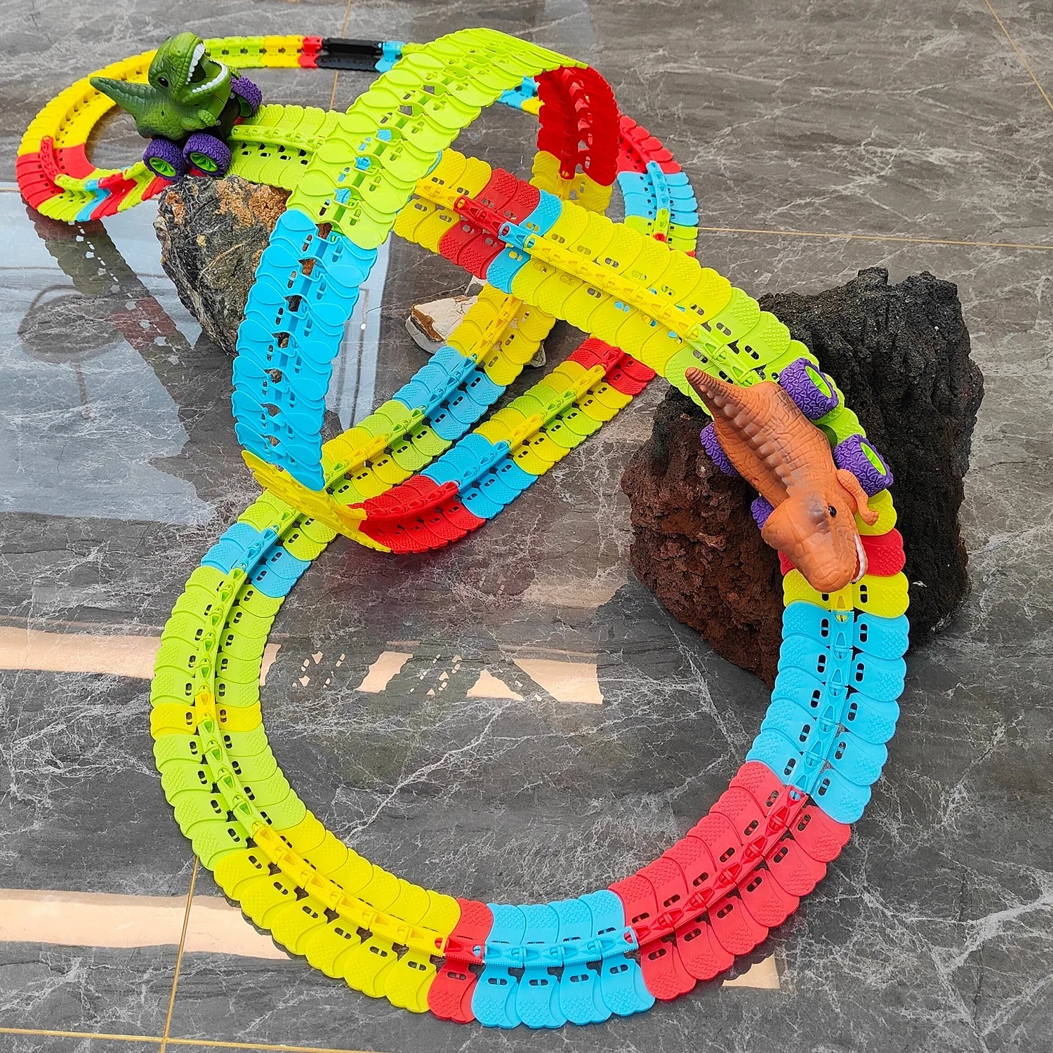 🚀 Create a Magical World of Adventure with the Dinosaur Track Race Car Set! 🦖